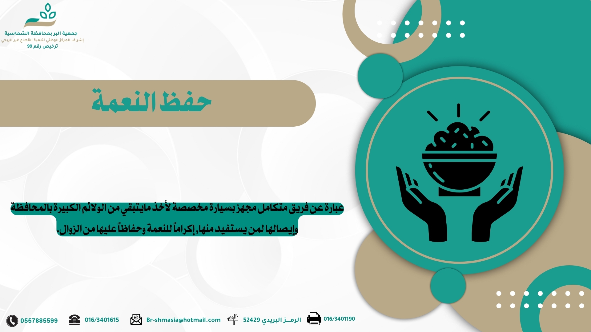 عبارة عن فريق متكامل مجهز بسيارة مخصصة لأخذ مايتبقي من الولائم الكبيرة بالمحافظة