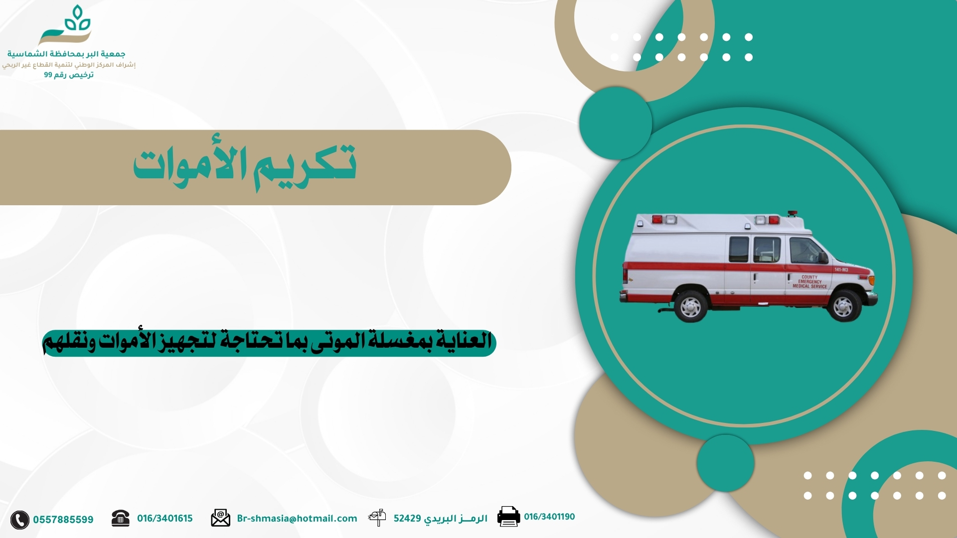 تم تنفيذ البرنامج خلال عام 2021 بالعناية بمغسلة الأموات وتوفير جميع ما تحتاجه من مستلزمات بتكلفة مقدارها 3283ريال